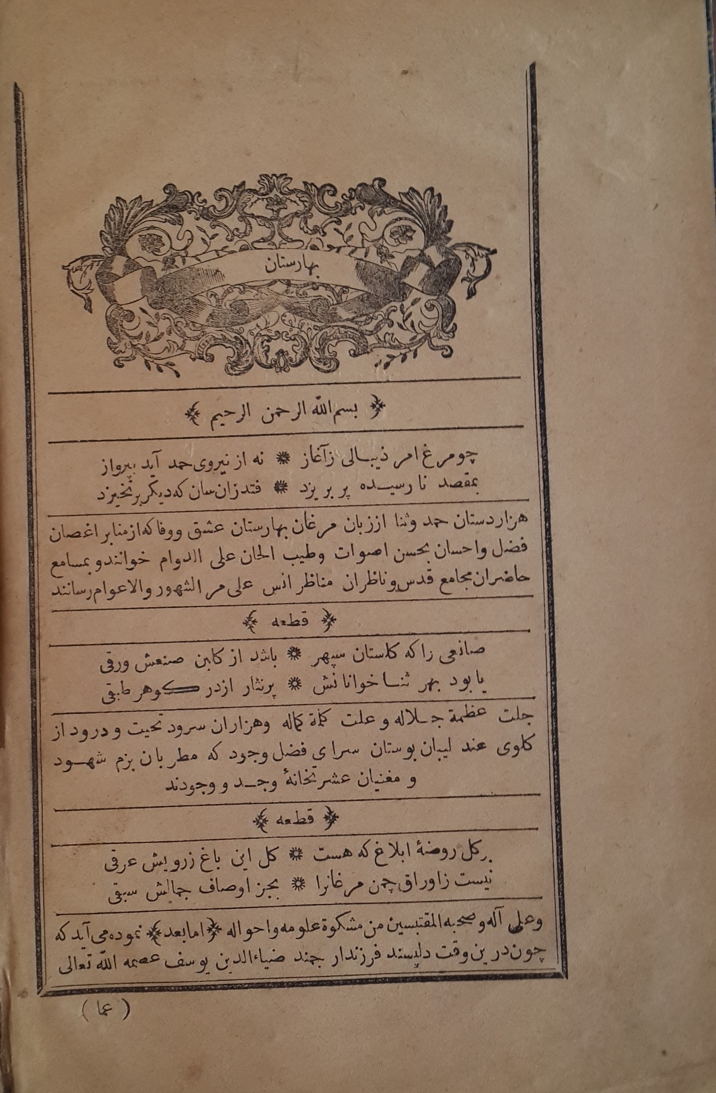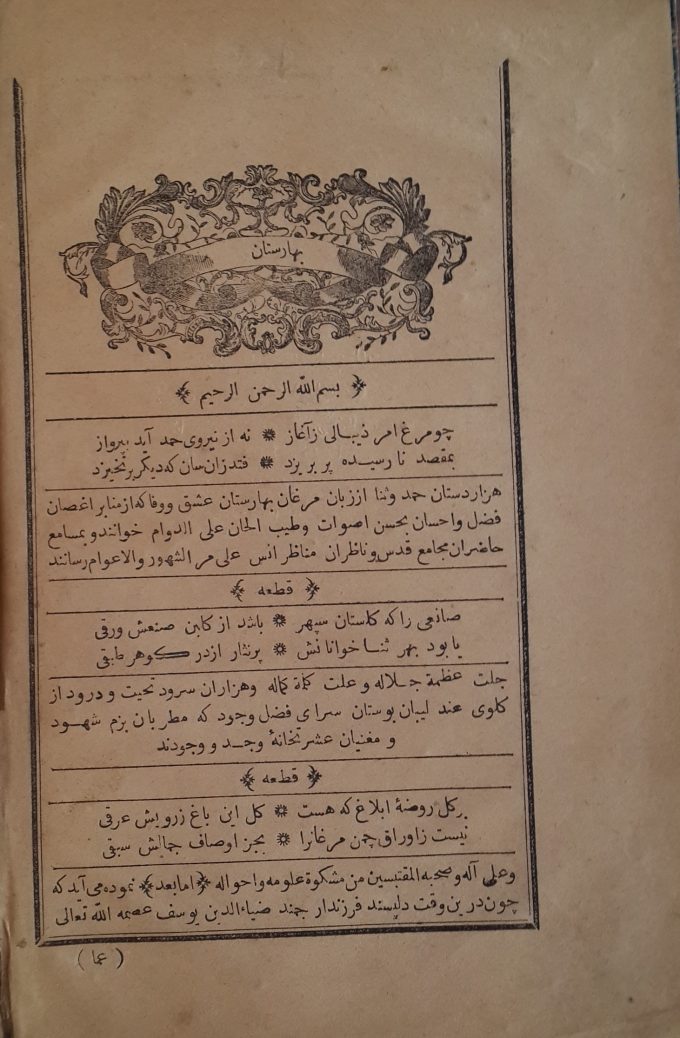 Din ve Tasavvuf, EdebiyatCami Baharistan’ı Şirazlı Sadi’nin mensur-manzum Gülistan isimli kitabını örnek alarak yazmıştır. Eserde, dünya hayatı için gerekli görülen bilgi, görgü ve öğütler, zevkle okunacak şekilde bir araya getirilmiştir.
