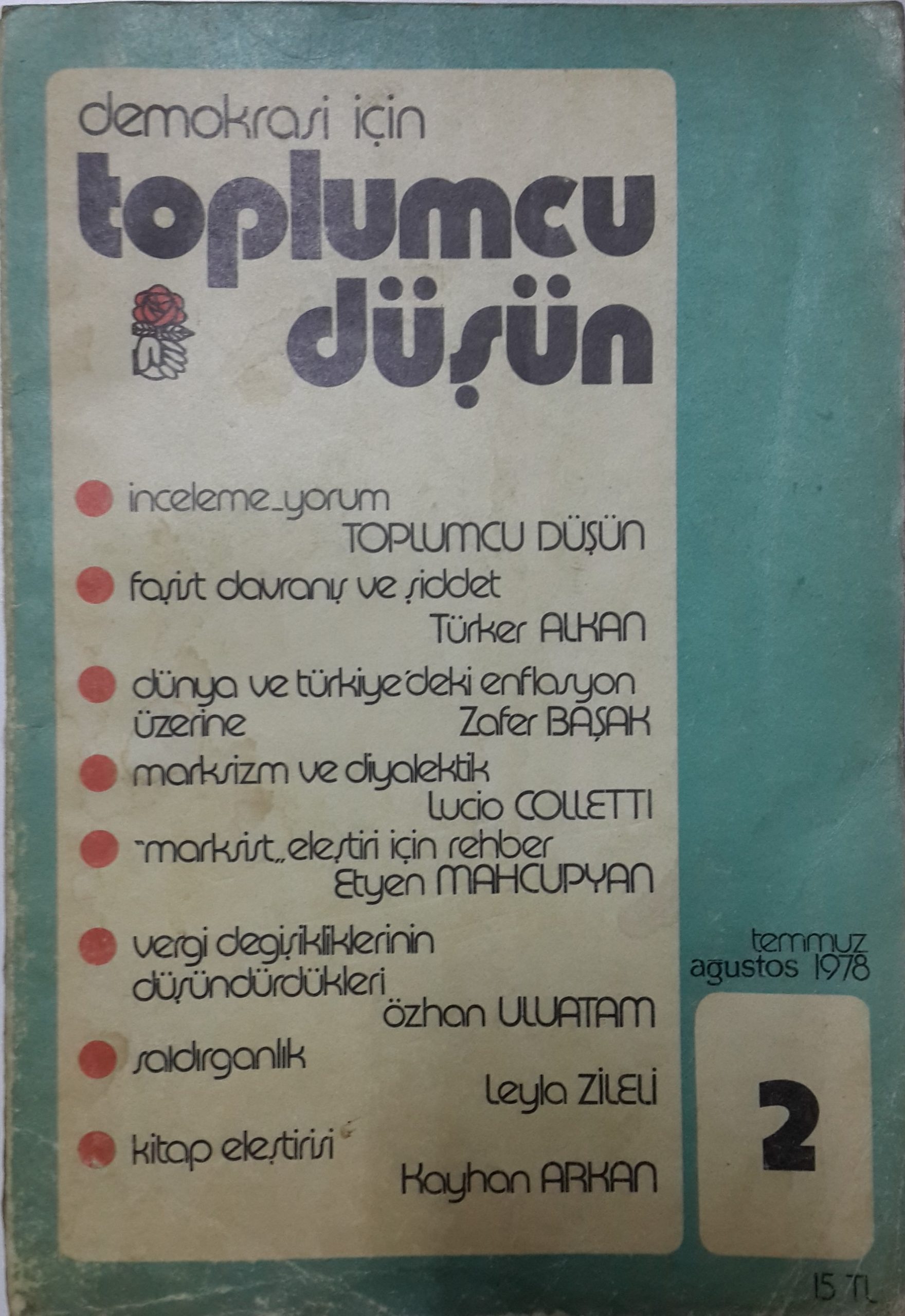 Latin Harfli Türkçe Süreli YayınSAHİBİ VE SORUMLU MÜDÜRÜ : İ. Birol GANİOĞLU İDARİ SEKRETER : Melih ÖZTÜRK YAYIN KURULU : Türker ALKAN, Nilüfer ARIAK, M. Kadri ATABAŞ, Etyen MAHCUPYAN, Yahya S. TEZEL