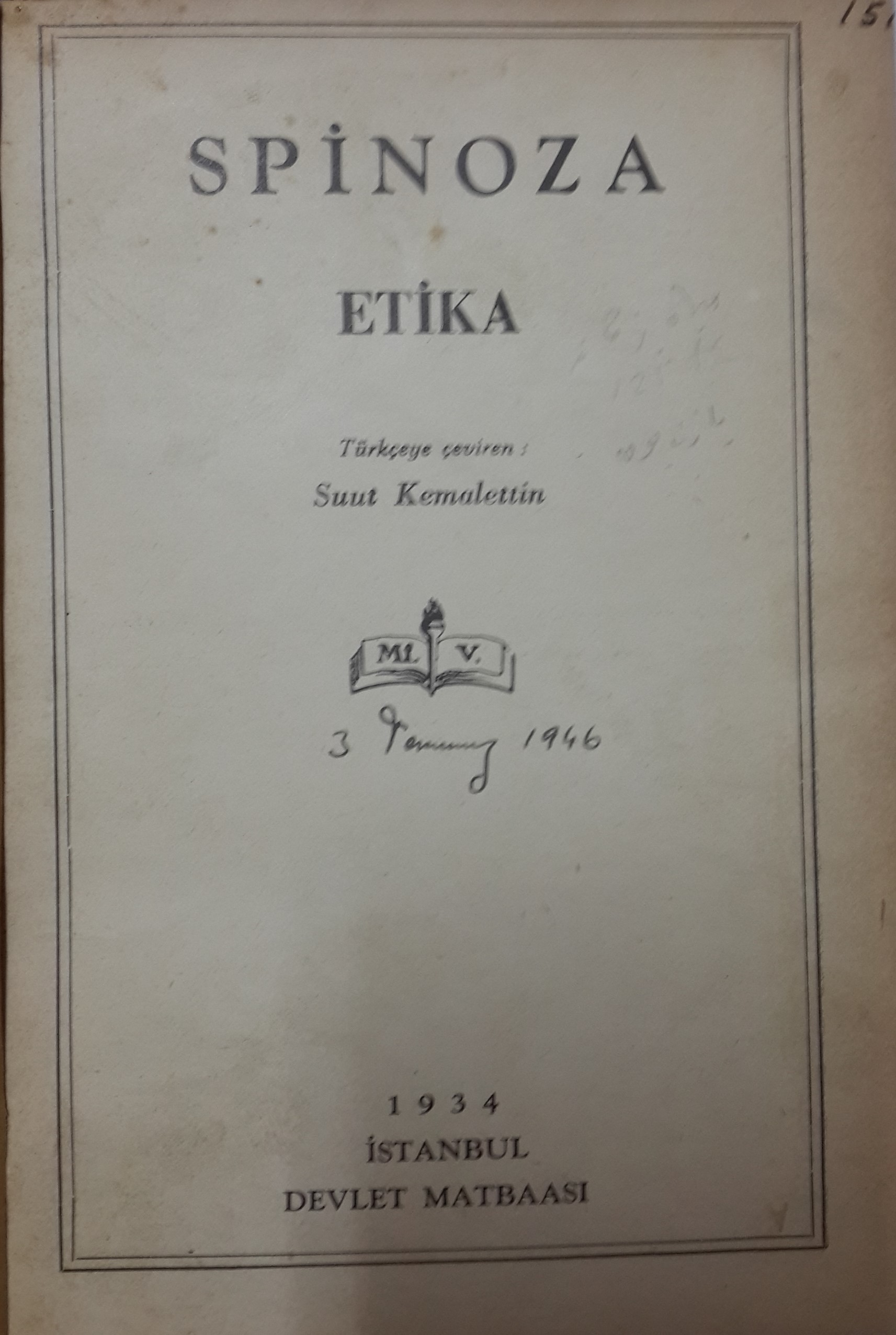 1* Etika, Spinoza, Suut Kemalettin, İstanbul, 1934, Devlet Matbaası, 46 S.