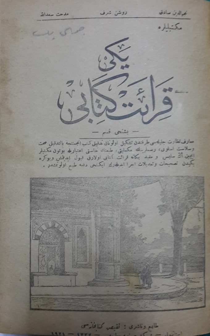 2- YENİ KIRAAT KİTABI 5. Kısım Devre-i Aliye 1. Sene Midhat Sadullah Sander, Ruşen Eşref Ünaydın, Necmeddin Sadık Sadak İstanbul, Şirket-i Mürettibiye Matbaası 1334 (1918) 175 Sayfa ÖZEGE 23125