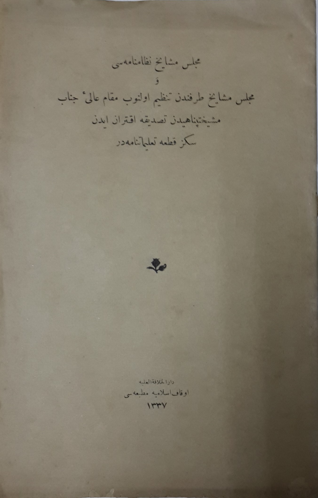 ve meclis-i meşayıh tarafından tanzim olunup makam-ı ali-i cenab-ı meşayihi penahiden tasdike iktiran eden sekiz kıta talimatnamedir.