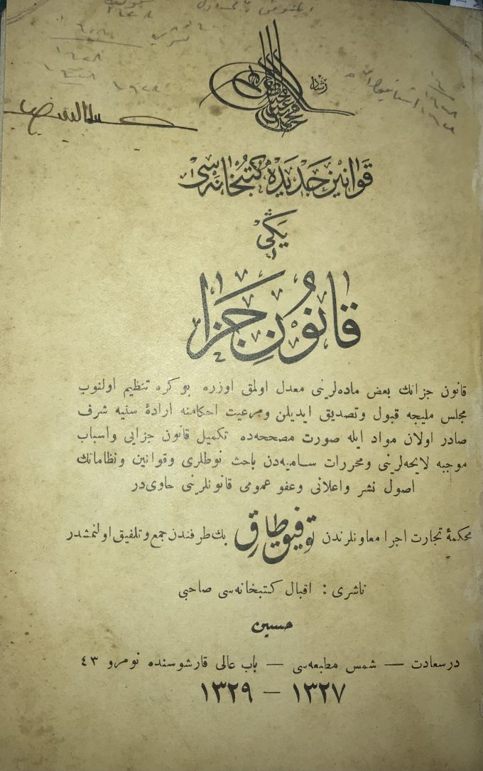 2- YENİ KANUN-I CEZA İst. Şems Matbaası 132/29 (1911) 191 S. 23106