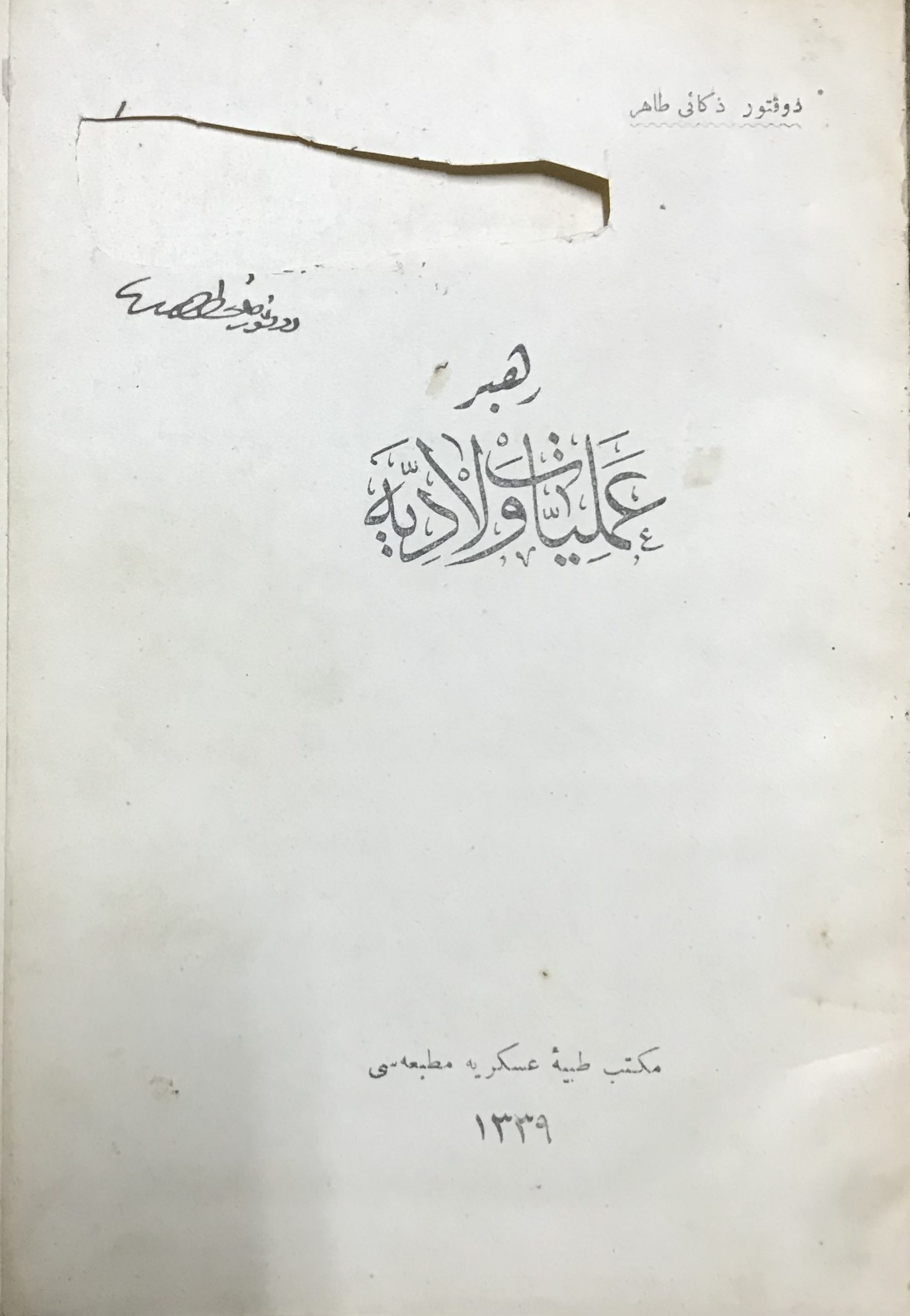 Sağlık1. kitap : Rehber-i Ameliyat-ı Viladiye Dr. Zekai Tahir İstanbul, Mekteb-i Tıbbiye-i Askeri Matbaası 185+5 sy 16568