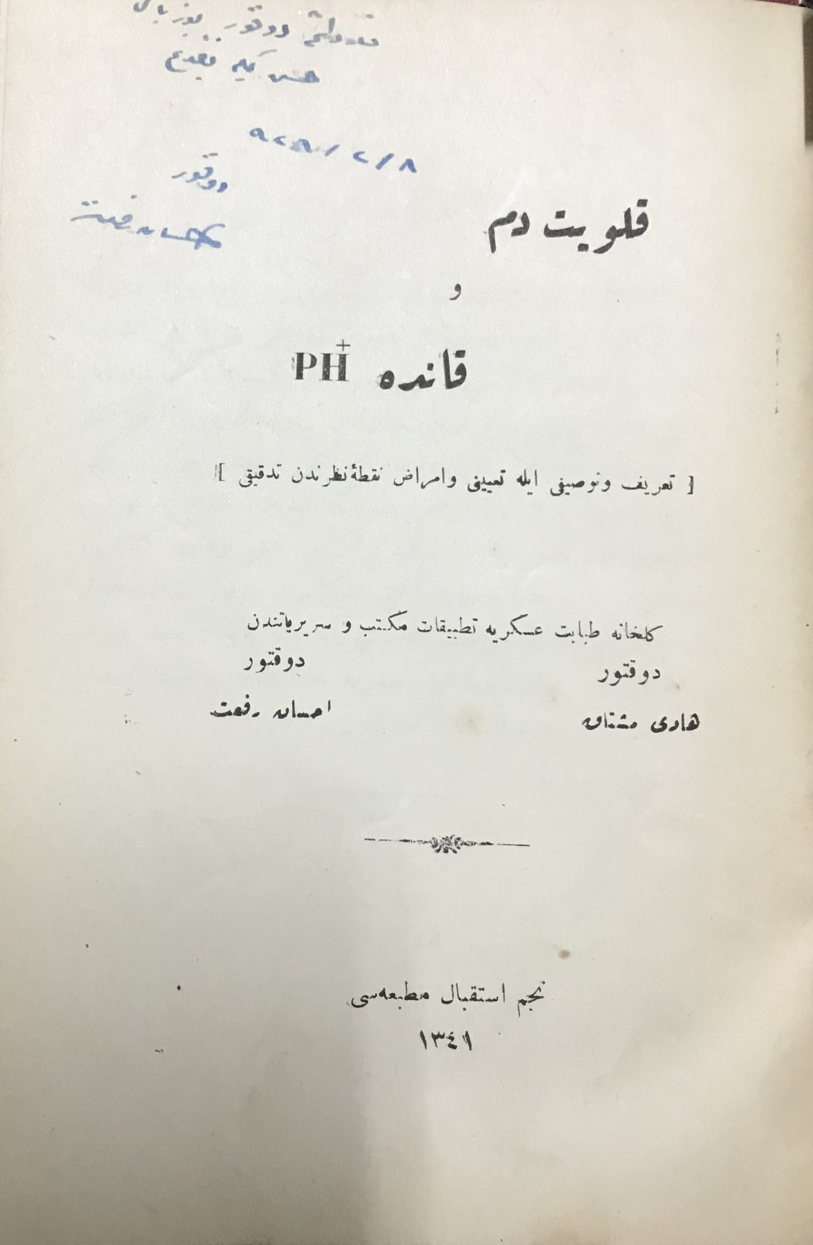 REHBER-İ AMELİYAT-I VİLADİYE / KALEVİYET-İ DEM VE KANDA PH (İki Kitap Aynı Cilt içinde)