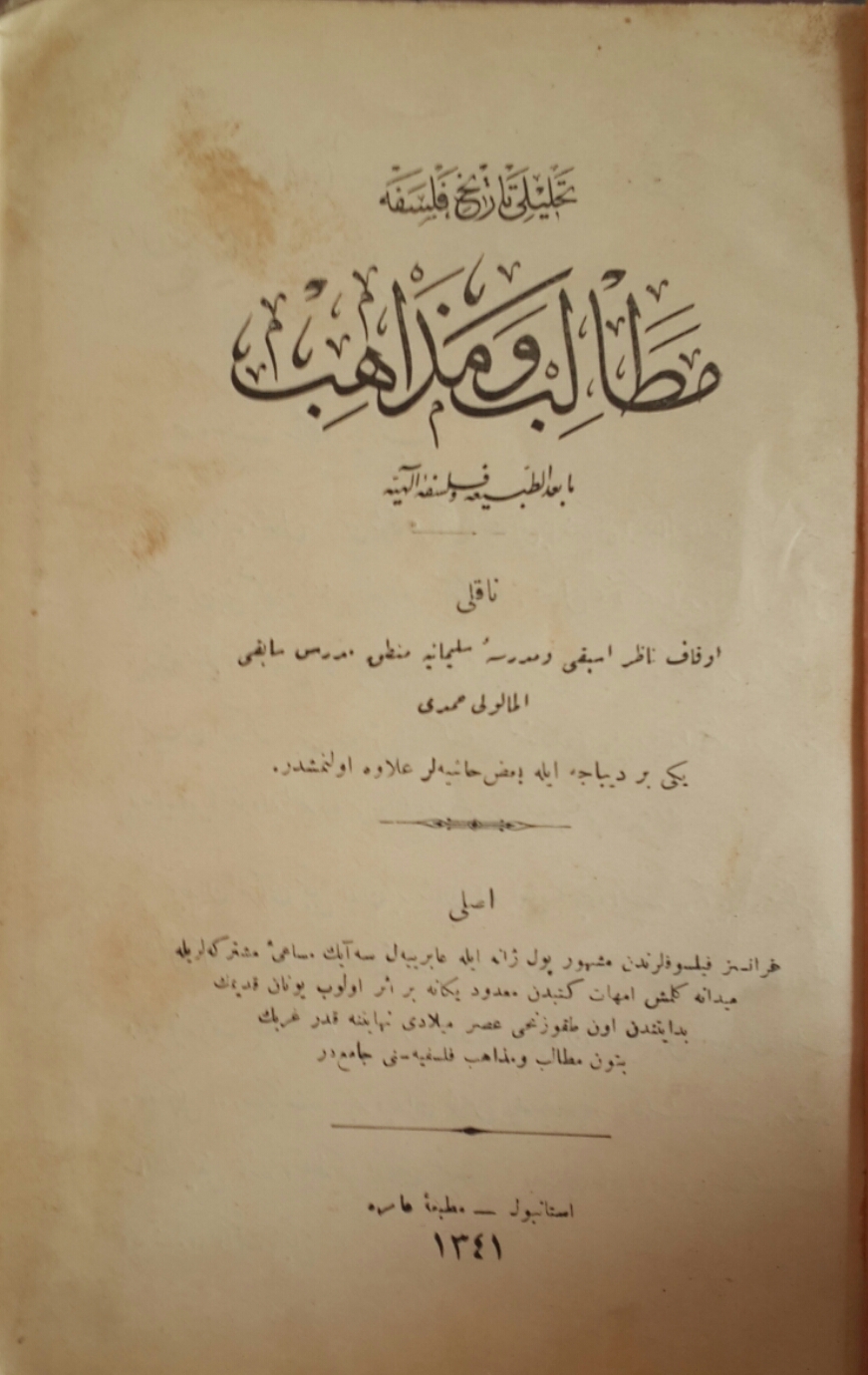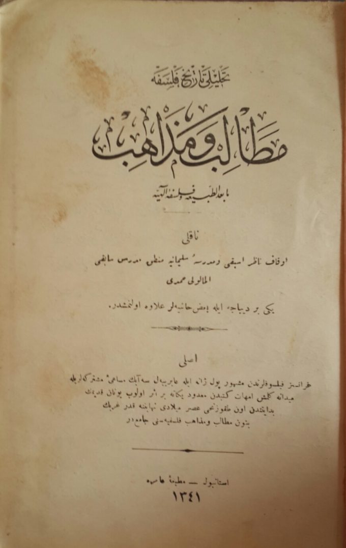 TAHLİL-İ TARİH-İ FELSEFE Metalib ve Mezahib Maba’de’t-Tabi’a ve Felsefe-i İlahiye