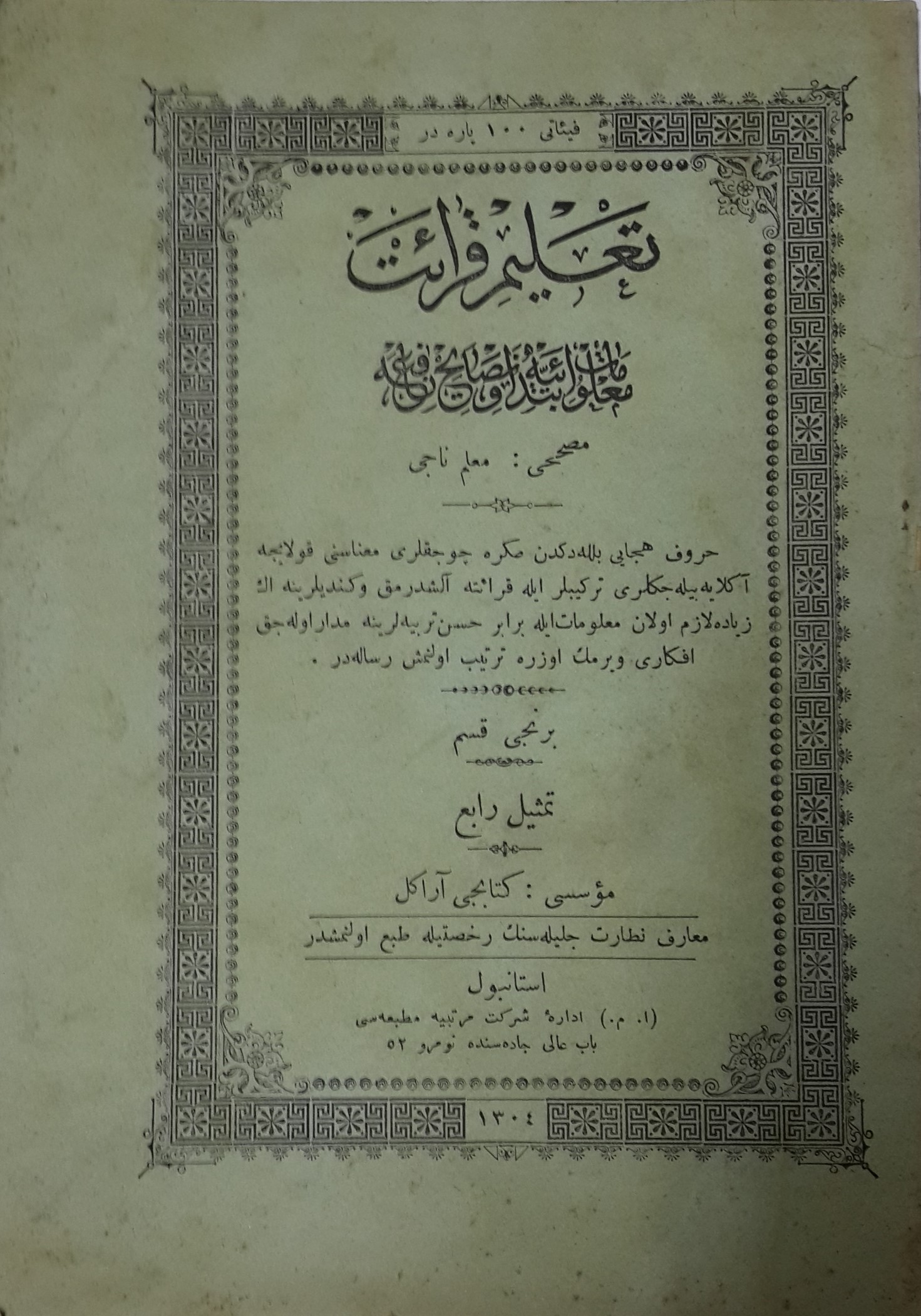 TALİM-İ KIRAAT MALUMAT-I İBTİDADİYE NASAYİH-İ NAFİA 1. Kısım