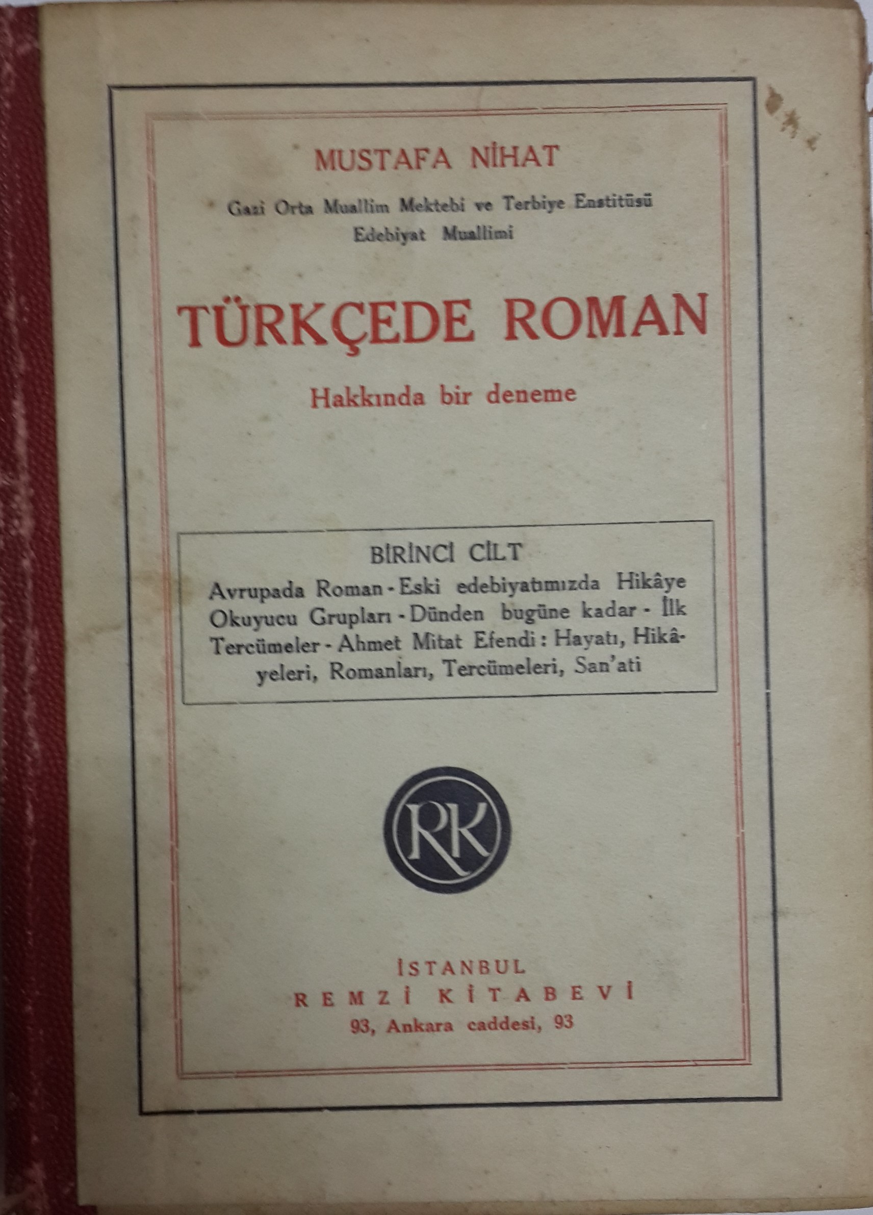 TÜRKÇEDE ROMAN Hakkında Bir Deneme Birinci Cilt
