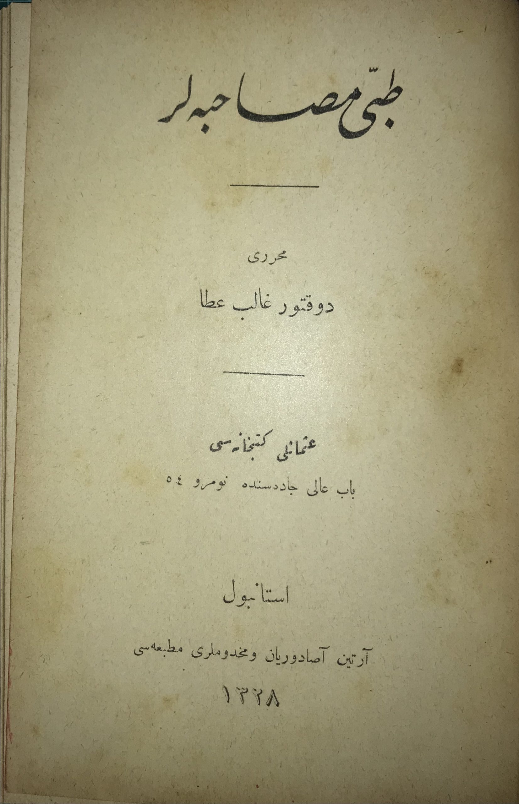 5- TIBBİ MUSAHABELER : Dr. Galip Ata İst. Artin Asaduryan ve Mahdumları Matbaası 1328(1912) 222+1 S. 20984